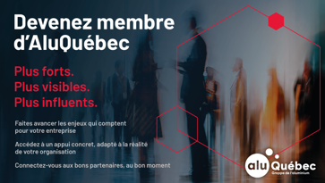 Coût de l'adhésion : À compter du 1er mars 2027, AluQuébec procédera à une révision de sa grille tarifaire. Pour l’année en cours, le tarif de 500 $ (+tx) est exceptionnellement maintenu afin de soutenir les entreprises touchées par la crise tarifaire et de favoriser la mobilisation du plus grand nombre d’acteurs de l’industrie.